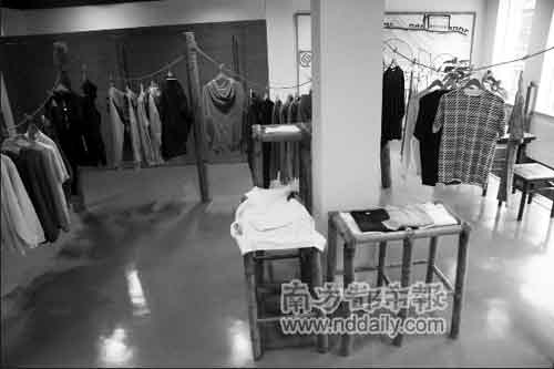 二樓,除了球鞋,還有一些外套和T恤,其中部分是陳冠希和他的朋友自己設(shè)計(jì)的,這些衣服掛在舊上海老式的竹竿上,簡(jiǎn)約至極。