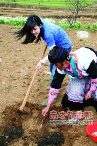 身為“樂施會(huì)中國發(fā)展基金”樂施大使(編者注:樂施大使不止一個(gè),胡杏兒、何韻詩等不少香港藝人都以這一身份積極參與樂施會(huì)的慈善活動(dòng))的周慧敏,于月前赴云南祿勸縣馬櫻花村探訪當(dāng)?shù)卮迕,親身體驗(yàn)樂施會(huì)在當(dāng)?shù)赝菩小爸俗灾狈鲐毠ぷ鞯某尚А?/p>