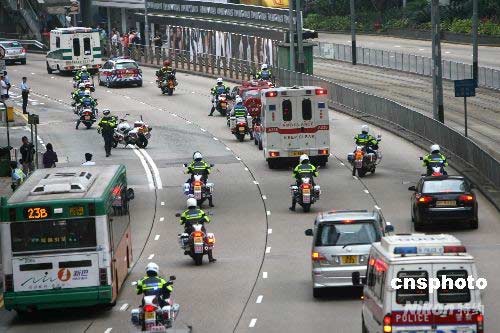 香港舉行北京奧運火炬接力測試,以確保五月二日的傳遞活動順利舉行。包括救護、消防等多部門的火炬保障車隊陣容強大。武仲林 攝