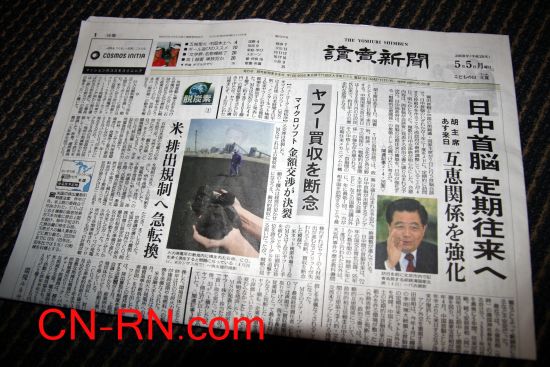 胡錦濤主席訪日 日本四大報(bào)頭條報(bào)道(組圖)