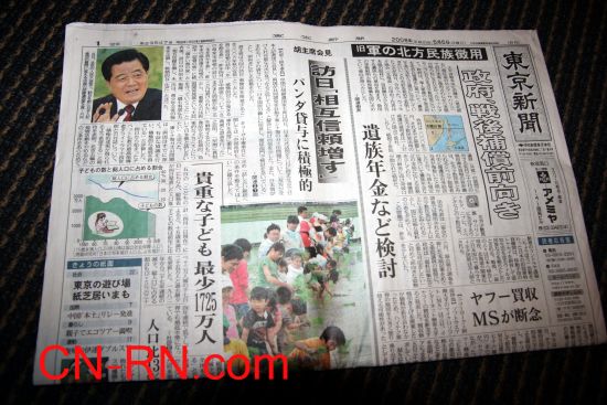 胡錦濤主席訪日 日本四大報頭條報道(組圖)(2)