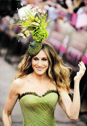 43歲的莎拉·杰西卡·帕克,延續(xù)在劇中特立獨行的時尚風格,穿著英國設(shè)計師麥奎恩設(shè)計的淺綠色露肩圓裙小禮服,搭配由崔西所設(shè)計,充滿園藝感的立體特殊小圓帽,帽子上還有生動的蝴蝶和花朵,一出場即吸引眾人的目光,令身旁的3位女星頓時失色。外傳4名女主角互有心結(jié),她們當天就以熱絡(luò)的擁抱化解謠言,還親切為影迷簽名。