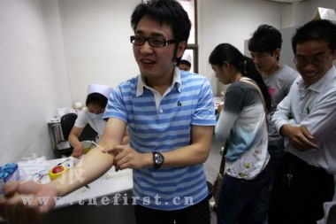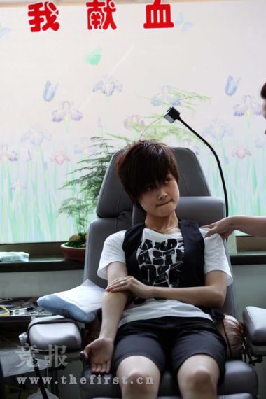 何潔、黃雅莉是約好一起開車到血液中心的,并在車上填完獻(xiàn)血申請(qǐng)表?吹窖褐行木谷挥羞@么多人在獻(xiàn)血,她們也很激動(dòng),“不知道這么多人都會(huì)來啊,都是為災(zāi)區(qū),感覺很感動(dòng)。”何潔說:“我以前在四川上學(xué),已經(jīng)問候了那邊的朋友,他們都很平安。今天是我第一次獻(xiàn)血,感覺還好吧。”同來的黃雅莉雖然緊張,但還是很期待:“哎,不就是抽點(diǎn)血嘛,抽完了就好啦!痹诼犝f好朋友李宇春也來獻(xiàn)血時(shí),她們很關(guān)心:“春春暈血,她現(xiàn)在沒事吧!辈贿^在進(jìn)入驗(yàn)血室時(shí),剛剛還一副豁出去樣子的黃雅莉卻像孩子一樣跟公司的工作人員說:“其實(shí)我還是有點(diǎn)緊張哈!”但是她在何潔抽血時(shí),卻不停地給同伴鼓勵(lì):“何潔,別緊張,我支持你哦!”