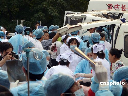 5月19日下午五點(diǎn)半多,四川汶川地震災(zāi)區(qū)的一批重傷員抵達(dá)重慶,重醫(yī)附一院的醫(yī)生護(hù)士象解放軍野戰(zhàn)醫(yī)院搶救傷員一樣投入搶救,猶如前方的戰(zhàn)場(chǎng)。