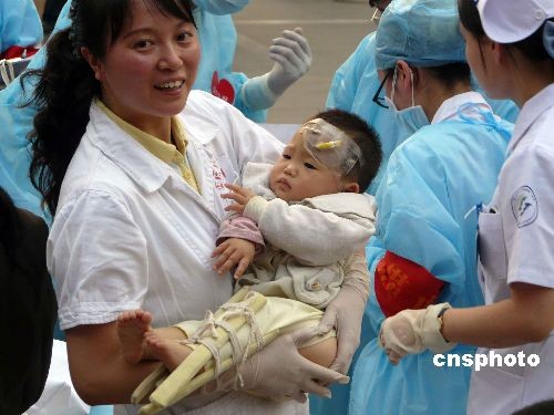 5月19日下午五點(diǎn)半多,四川汶川地震災(zāi)區(qū)的一批重傷員抵達(dá)重慶,重醫(yī)附一院的醫(yī)生護(hù)士象解放軍野戰(zhàn)醫(yī)院搶救傷員一樣投入搶救,猶如前方的戰(zhàn)場(chǎng)。