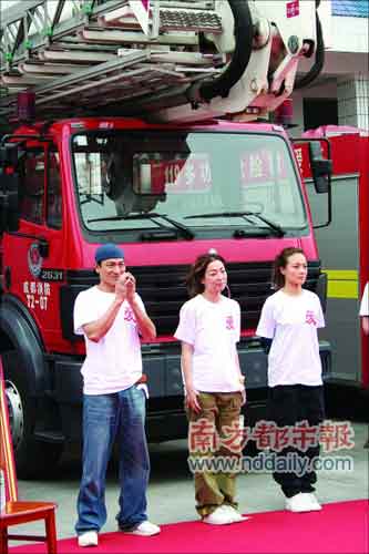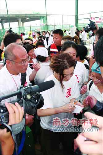 組圖:明星義工探訪災(zāi)區(qū)群眾 同救災(zāi)英雄齊唱國(guó)歌(2)