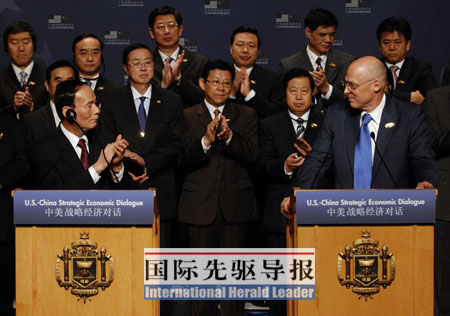當王岐山帶領10多位部長和副部長級官員登上主席臺時,全場響起熱烈掌聲,鼓掌者包括來自美國總統(tǒng)特別代表、財政部長保爾森以及其他七八位美國部長級官員。保爾森在致辭中特別提到,這是他和他的內(nèi)閣同事們首次與中國政府新“經(jīng)濟團隊”集體會面,他期待著美中通過戰(zhàn)略經(jīng)濟對話這個平臺共同解決面臨的問題。