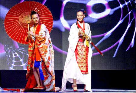 日本佳麗(左)與韓國佳麗各自穿出擁有該國特色及改良式民族服裝。