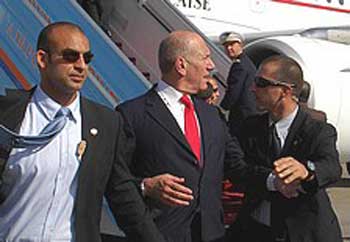 以色列安全人員護(hù)送總理奧爾默特離開(kāi)現(xiàn)場(chǎng)。(以色列耶路撒冷郵報(bào)圖)