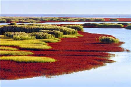 盤錦,地勢平坦,景觀獨特,資源豐富,可謂物華天寶,被稱作美麗、富饒的遼河金三角。距北京600多公里的遼寧盤錦有一片海灘,秋天一到,海邊的植物慢慢變紅,大片紅色鋪滿整個海灘,異常壯觀。