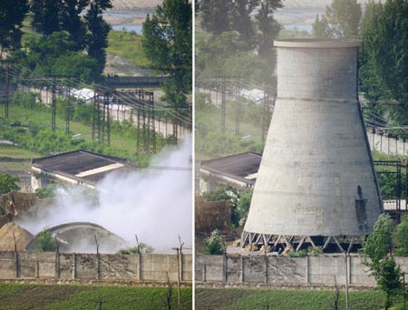 我們?cè)@詫于朝鮮反復(fù)的核政策,以及六方會(huì)談協(xié)議屢次“被架空”的怪現(xiàn)狀。我們?cè)h(yuǎn)遠(yuǎn)地觀望這個(gè)國(guó)家對(duì)“核”的情感,并作出各種正確或有失偏頗的解讀。如今,為了“慶!睂庍吥莻(gè)高大的冷卻塔轟然倒地,我們才得以一窺神秘的朝鮮“核”心