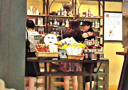 雖然鐘麗緹腹大便便,但依然十分照顧Yasmine,不時為她撥弄頭發(fā),可謂廿四孝媽咪。她們經(jīng)過電影院時,還專注地看電視播放的《功夫熊貓》預(yù)告片,十分入神。隨后,一行人又到L'occitane看香熏,不過左看右看,都揀不到合適產(chǎn)品,最后空手離去。