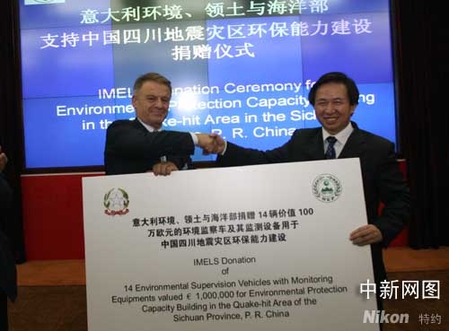 中新網7月11日電 意大利環(huán)境、領土與海洋部近日向中國環(huán)境保護部提供環(huán)境保護儀器、設備及技術援助,用以支援四川省震后環(huán)保應急工作以及災區(qū)重建過程中的環(huán)境保護能力建設。