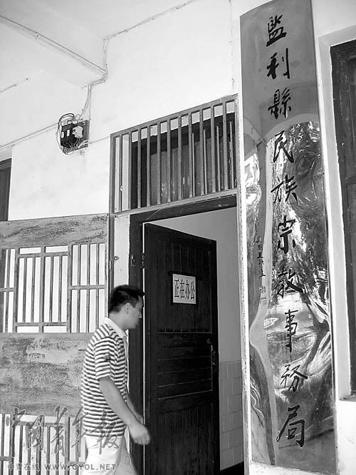 7月28日上午,記者輾轉(zhuǎn)找到監(jiān)利縣民族宗教事務(wù)局。該局辦公室門(mén)口一張落款日期為2007年10月的告示稱(chēng):“遵照省、市通知精神,停止辦理少數(shù)民族身份確認(rèn)手續(xù)!币晃蛔苑Q(chēng)剛剛借調(diào)來(lái)的工作人員介紹,這是因?yàn)楫?dāng)時(shí)來(lái)辦民族變更手續(xù)的人很多,“很煩,就在門(mén)口貼了這張公告!