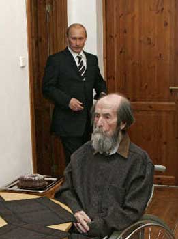 頒獎典禮結(jié)束后,普京還突然決定前往莫斯科郊外的索爾仁尼琴家中拜訪由于健康原因無法去克里姆林宮領(lǐng)獎的作家。普京對他說:“我想特別感謝您為俄羅斯所做的貢獻(xiàn),直到今天您還在繼續(xù)自己的活動。您對自己的觀點(diǎn)從不動搖,并且終生遵循!(黃頻)