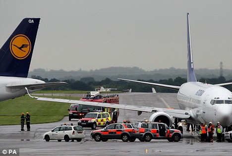 兩架客機(jī)在英國機(jī)場跑道相撞 飛機(jī)嚴(yán)重受損(組圖)(2)