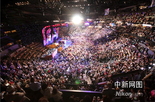 大會現(xiàn)場,Pepsi Center 內(nèi)大約有兩萬個(gè)座位,除了后臺的座位,全部爆滿。馬婧 攝