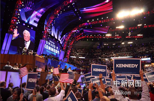 大會(huì)第一天主題為:向肯尼迪家族的獻(xiàn)禮。愛德華-肯尼迪演講時(shí)臺(tái)下的觀眾歡呼雀躍。馬婧 攝