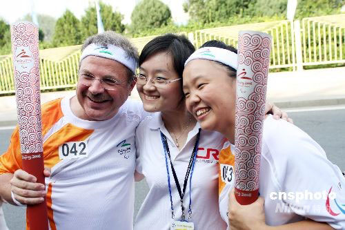 9月4日,殘奧會火炬到達北京,將在北京的“一壇兩園”展開最后一天傳遞行程。據北京市體育局副局長孫學才介紹,北京地區(qū)的240名火炬手既有工作在基層一線的普通勞動者,又有體壇名將、文藝工作者。其中,殘疾人士共70名,占火炬手總數的近30%。中新社發(fā) 王昊 攝