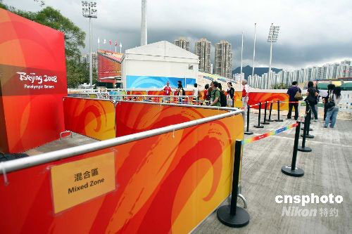 北京2008年殘奧馬術(shù)比賽將在九月七日至十一日在香港舉行。在五天的比賽中,將有七十三名運(yùn)動(dòng)員參賽,殘奧馬術(shù)選手村和比賽場(chǎng)地基本沿用奧運(yùn)馬術(shù)的措施,但為了保障運(yùn)動(dòng)員們的安全,部分場(chǎng)館則做出適當(dāng)改動(dòng)。中新社發(fā) 洪少葵 攝