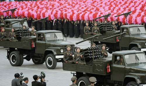 有報道說,閱兵儀式上出動了炮兵團、地對空導(dǎo)彈發(fā)射器以及槍支等武器。朝鮮國防委員會副委員長金永春次帥等軍隊領(lǐng)導(dǎo)在指揮臺觀看了長達約30分鐘的儀式。閱兵儀式后,由10萬名平壤市民舉行了盛裝游行,大學(xué)生等人進行了火把演出。