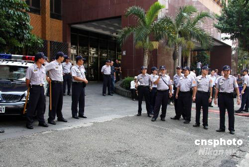 圖為大批保安警察一早就在臺北地方法院門口戒備。中新社發(fā) 陳立宇 攝