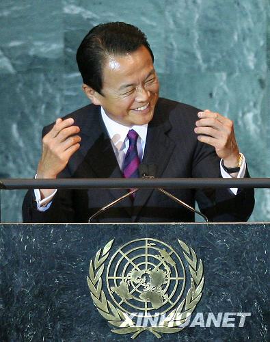 9月25日,在美國(guó)紐約聯(lián)合國(guó)總部,參加聯(lián)大一般性辯論的日本首相麻生太郎用日語(yǔ)講了幾分鐘后得知大會(huì)的日語(yǔ)翻譯未就位,臺(tái)下代表聽(tīng)不懂他說(shuō)什么時(shí)不禁有些尷尬地啞然失笑。當(dāng)日,第63屆聯(lián)大一般性辯論進(jìn)入第三天。新華社記者 侯俊 攝
