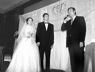 先前就已經(jīng)敬了十幾桌酒,這回又一口氣喝了一大杯葡萄酒,劉煒漸漸頂不住了,過了一會兒他突然跑到一個墻角吐了起來。這下可急壞了新娘子,護(hù)夫心切的王衛(wèi)婷此后也豪氣勃發(fā),只要誰要想和劉煒斗酒,她都搶著說“我要分一半”,只是劉煒抱定“苦了我一人,幸福千萬家”的念頭,終于敬完了全場32桌的嘉賓。