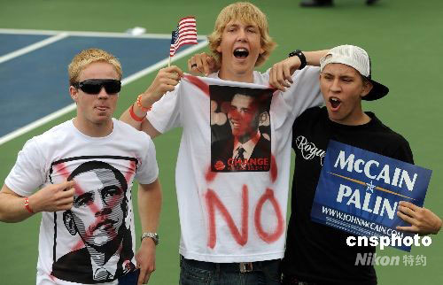 圖為支持共和黨的三名高中生在現(xiàn)場(chǎng)反對(duì)民主黨總統(tǒng)候選人奧巴馬。中新社發(fā) 張煒 攝