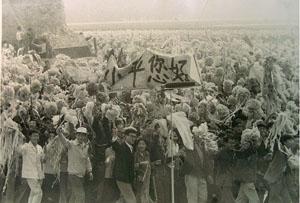 在游行隊(duì)伍中,北京大學(xué)學(xué)生舉起寫著“小平您好”的橫幅走過檢閱臺(tái)前,引起陣陣歡呼聲。簡短的四個(gè)字,濃縮了深厚的感情。