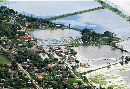 中新網(wǎng)1月28日電 綜合報(bào)道,玻利維亞因連日暴雨導(dǎo)致洪水泛濫,根據(jù)當(dāng)?shù)孛襟w報(bào)道,包括一名意大利人在內(nèi),洪水已經(jīng)造成32人死亡。圖為中南部圣克魯茲26日的鳥(niǎo)瞰圖,一半以上的區(qū)域已被洪水淹沒(méi)。