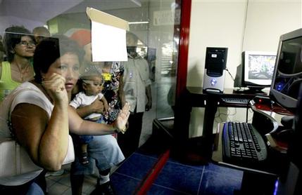 據(jù)稱,雖然古巴政府已經(jīng)放開電腦禁售令,但除了少數(shù)官員和記者外,絕大多數(shù)古巴民眾仍然被禁止在家中連接國際互聯(lián)網(wǎng)。所以現(xiàn)在他們購買的新電腦大多數(shù)都無法進(jìn)入國際互聯(lián)網(wǎng)。為此,一些民眾在黑市上花錢購買電子郵件進(jìn)入許可,其實(shí)也就是與被官方批準(zhǔn)連接國際互聯(lián)網(wǎng)的用戶共享賬號。不過由于古巴還沒有銀行信用卡,所以他們還不能進(jìn)行網(wǎng)上購物。