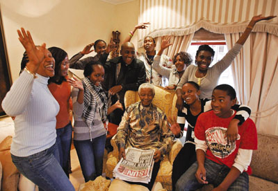 曼德拉在東角的家中舉行生日會,孫子與孫女圍著他獻唱生日歌。