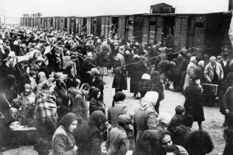 法西斯用火車把猶太人從歐洲各國押運(yùn)到奧斯威辛集中屠殺。