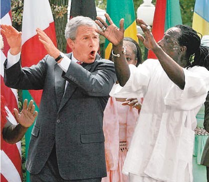 于白宮出席活動(dòng),提高大眾對(duì)非洲瘧疾問(wèn)題的意識(shí),期間他模仿非洲舞蹈演員“翩翩起舞”