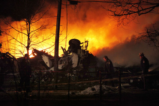 據(jù)當(dāng)?shù)孛襟w報(bào)道,一位居住在事故現(xiàn)場(chǎng)附近的目擊者稱,墜機(jī)前,他先聽(tīng)到聲音很大,緊接著聲響戛然而止,過(guò)了一兩秒鐘,突然傳來(lái)震耳欲聾的爆炸聲,接著看到火光沖天,最初,火焰足有四、五十英尺高。目擊者稱,事發(fā)兩個(gè)小時(shí)后,現(xiàn)場(chǎng)還能看到火光。