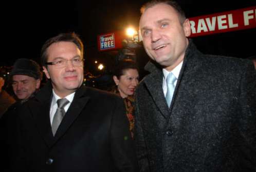 中新網(wǎng)捷克米古洛夫村12月20日電 12月20日晚10時離捷奧邊境撤銷檢查前2小時,奧地利內(nèi)務(wù)部長普拉特爾和奧地利駐捷克大使來到捷奧邊境捷方邊境小村米古洛夫和當(dāng)?shù)孛癖娨黄饝c祝這個具有偉大歷史意義的日子。