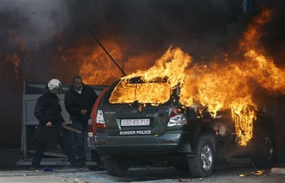 據(jù)英國廣播公司報道,大約一千名反對科索沃獨立的塞族抗議者周二(19日)沖擊亞林涅和巴尼亞兩個邊境過境點,并縱火燒毀了邊境站的海關(guān)和警察崗亭。