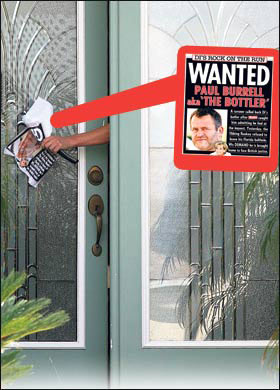 近日英國(guó)一家媒體將保羅•伯勒爾被“通緝”的海報(bào)貼在他家門(mén)口、他家的鮮花店以及他所在的小鎮(zhèn)中。保羅•伯勒爾終于“現(xiàn)身”,雖然只有一只胳膊——他從門(mén)縫中伸出胳膊,撕下了海報(bào)。
