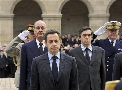 中新網(wǎng)3月18日電 綜合報道,法國政府17日為去世的第一次世界大戰(zhàn)最后一位老兵拉扎爾·蒙蒂塞利舉行國葬,以此向所有參加過一戰(zhàn)的法國軍人致敬。法國總統(tǒng)薩科齊和前總統(tǒng)希拉克17日上午在巴黎榮軍院參加為此舉行的閱兵儀式,全國各地政府機關和學校等建筑下半旗致哀。