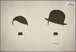 據(jù)英國媒體報道,在Hut Weber公司的這則廣告中,喜劇演員卓別林的圓頂禮帽下是希特勒標志性的頭發(fā)和胡須。下方,一行英文寫道:“這就是帽子!