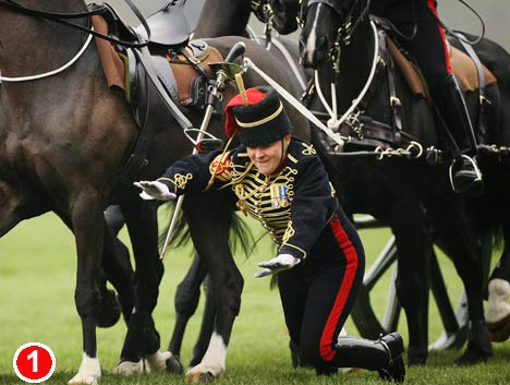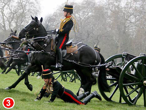 英國女王生日典禮 禮炮手疏忽大意摔下馬(組圖)