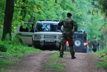 高地周?chē)鷺?shù)林里軍警遍布崗哨。(黃頻攝影)