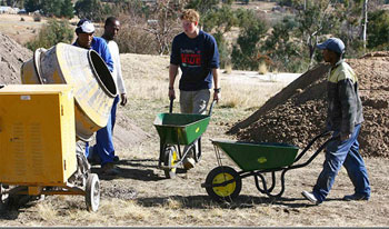 哈里王子與禁衛(wèi)騎兵“皇家藍軍騎兵團”的20多名戰(zhàn)友一起來到非洲南部的萊索托,幫助當?shù)匕滩」聝汉蜌埣矁和藿ㄌ厥鈱W校——拉索中心。哈里王子利用軍隊中學習過的技能,全身心投入到體力勞動中。