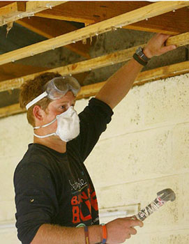 身穿體恤衫、斜紋棉布褲,腳穿結(jié)實膠鞋的哈里,像其他人一樣,手推獨輪車,耐心排隊等候裝水泥,然后經(jīng)過崎嶇不平的地形,將水泥倒進新建學校的基槽中。他還幫忙挖溝,修建特殊學校有利于殘疾兒童出入的斜坡。戴上口罩和護目鏡,哈里王子還能用錘子將鋼釘釘進學校食堂頂棚的木板中。
