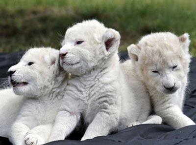 該動(dòng)物園的兩只母白獅6月30日同時(shí)產(chǎn)下總共7只小白獅。7只小白獅4只為雄性,3只為雌性。但是其中一只母獅拒絕喂養(yǎng)自己的4只小獅子,因而動(dòng)物園的管理員飼養(yǎng)了這些可愛(ài)的小家伙。