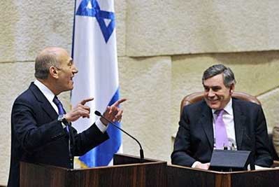 以色列總理奧爾默特(左)與英國(guó)首相布朗