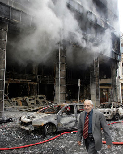 雖然政府公開呼吁各方冷靜,但在周日早間騷亂稍微平息之后,從中午開始,示威者繼續(xù)到處放火,向警察和商鋪投擲石塊,雅典市中心濃煙密布,在直升機(jī)的俯瞰下,灰蒙蒙一片。