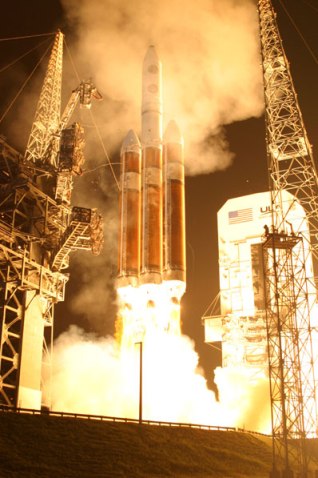 中新網11月12日電 綜合報道,美國空軍當?shù)貢r間10日晚使用德爾它4重型運載火箭發(fā)射了一顆間諜衛(wèi)星,場面十分壯觀。這次發(fā)射活動是在卡納維拉爾角的美國空軍基地完成的。