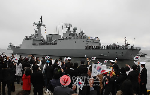 中新網(wǎng)3月13日電 據(jù)韓聯(lián)社報(bào)道,韓國“青海部隊(duì)”13日啟程前往索馬里海域。該部隊(duì)第一艘派兵艦艇——韓式驅(qū)逐艦(KDX-Ⅱ)“文武大王艦”,當(dāng)天上午在鎮(zhèn)海軍港舉行了出港及歡送儀式。